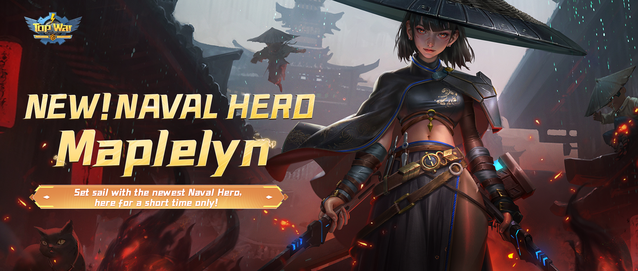 • All your naval units gain a 50% HP Shield and two 40% "Light Armor" stacks. After every regular attack from each naval unit, there's a chance to attack 2 enemy units, inflicting 70% damage to each of the unit, and dealing 50% Splash Damage to all other units in the same column. Each type of Damage Reduction Shield boosts this hero’s Splash Damage by 20% (up to 200%).